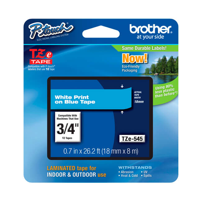 Cinta Brother TZE-545 Blanco Sobre Azul 3/4″ 18MM PT-D400