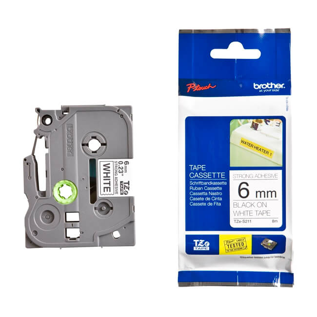 Cinta Brother TZE-S211 Negro Sobre Blanco 1/4 Tam 6mm x 8.00M Industrial