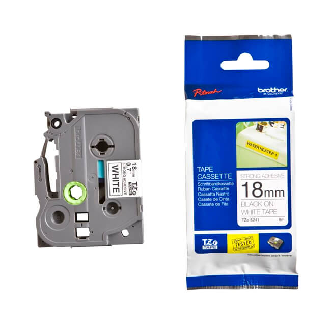Otros:BROTHER TZE-S241 PT-D400, PT-E550W, PT-D600, PT-P900W, PT-E300 NEGRO SOBRE BLANCO 3/4 Tamaño 18mm x 8.00 metros INDUSTRIAL