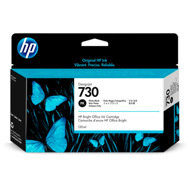 Tinta HP P2V67A 730 130ML Photo Black Designjet T1600/T1700/T2600.
